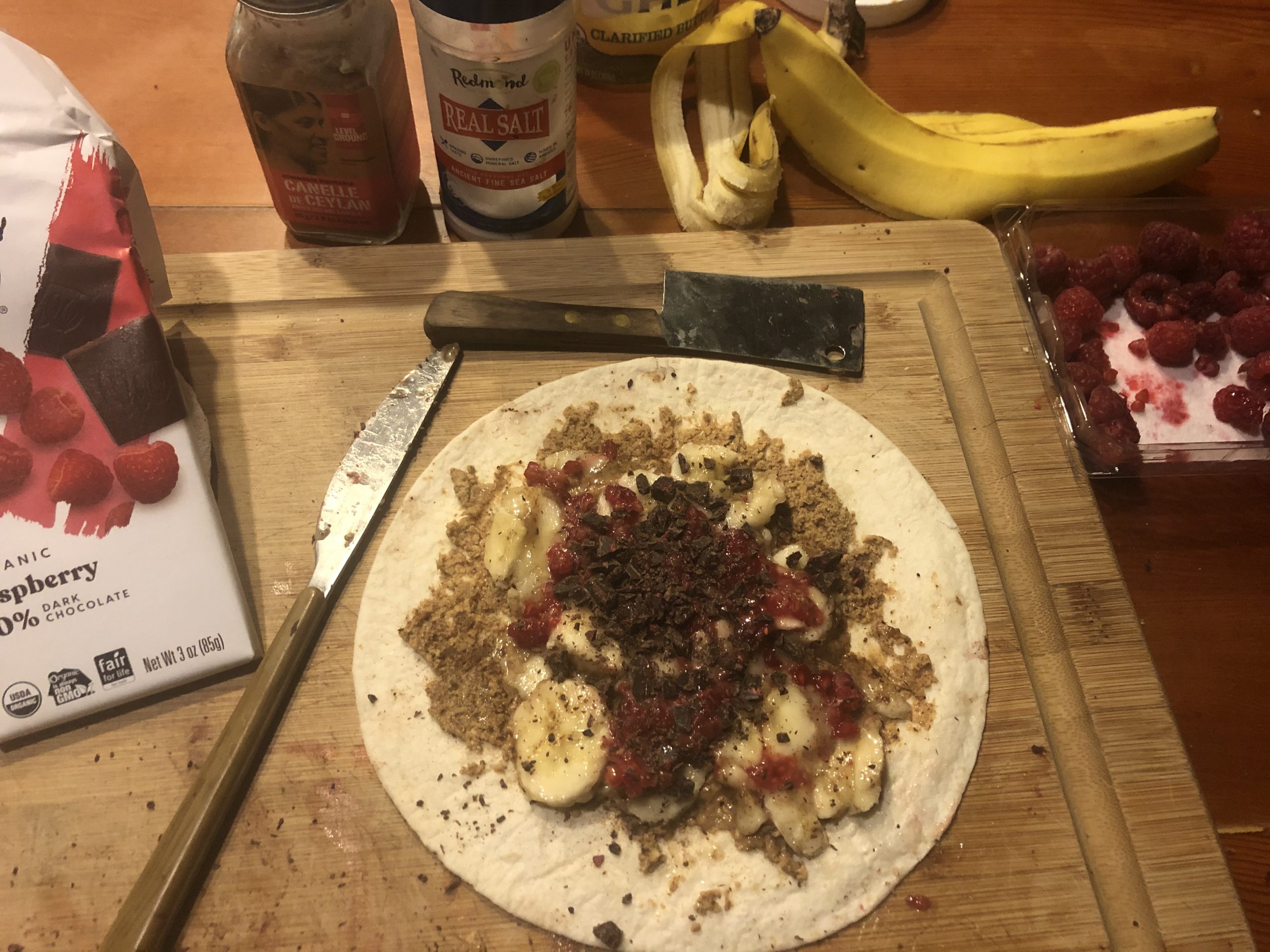 This year I stepped it up from mostly bars to a more whole food, homemade option. My go-to has been a white tortilla with almond butter, banana, maple syrup, cinnamon, sea salt, and a different (sometimes rotating) special ingredient. Some special ingredients that made the cut this year were (in no particular ranking): granola, pretzels, peanut m&ms, pumpkin butter, and raspberry  chocolate shavings. If it’s more of a full on running adventure (think: jostling) and less of a hike/run adventure, I skip the special ingredient and keep the contents in the wrap as simple as possible. I’m ALL about optimal digestion while running (and always) so I save the fun stuff for when the hike:run ratio favors the hiking.