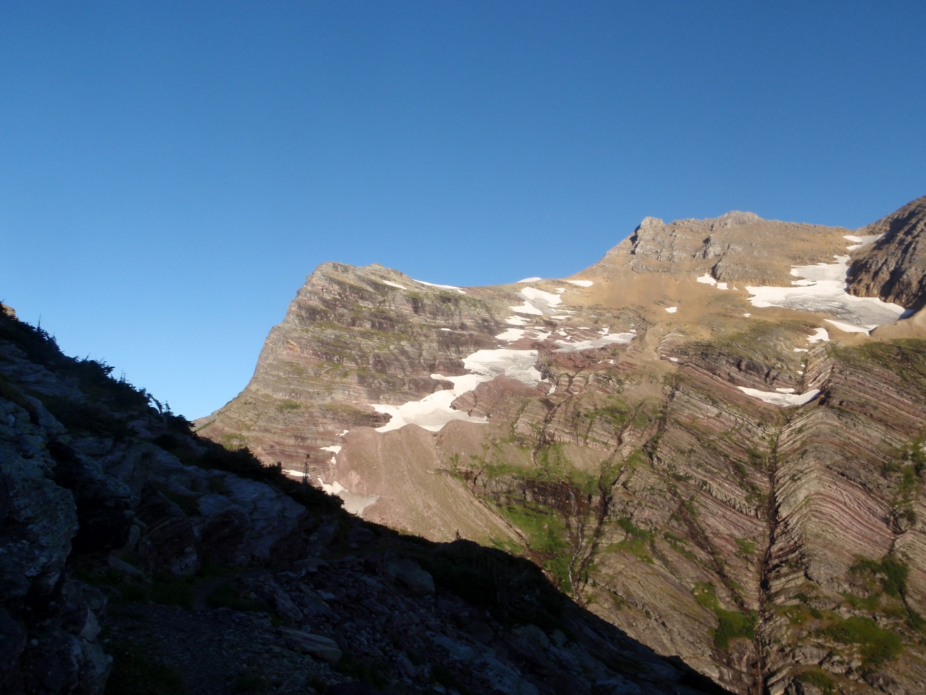 | The eastern side of the south ridge of Gunsight Mountain in the early morning |